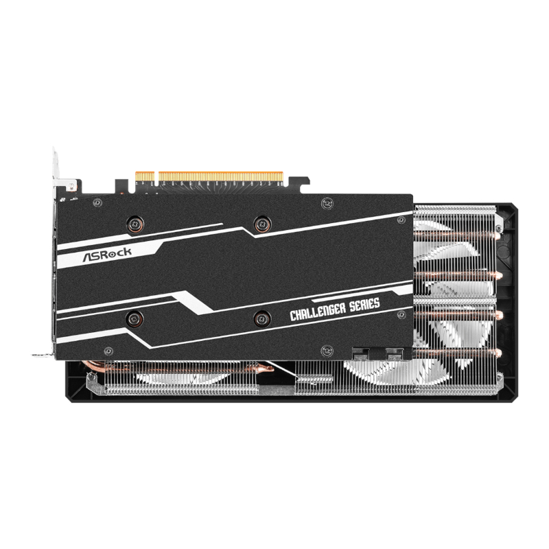 ASRock’s custom Striped Axial Fan delivers enhanced airflow to optimise cooling from not only the stripe structure on each fan blade but also the polishing surface on the bottom side. Two fans that provide a strong cooling performance and make your gaming rig stay cool. The fan spins when the temperature goes high for optimal cooling, and stops when the temperature goes low for complete silence. The heat pipes are consolidated to maximise contact between each other and the GPU baseplate for optimised heat dissipation.
