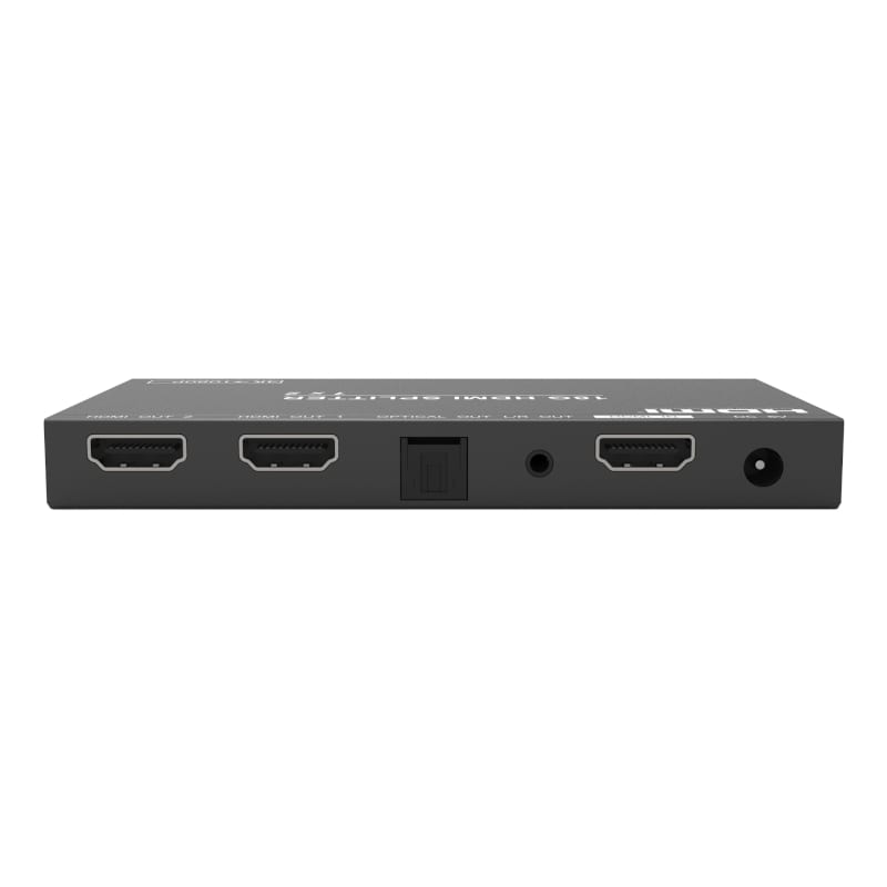 - Outputs: 2×HDMI Type A [19-pin female], 1×L/R Audio out [3.5mm Stereo Mini-jack], 1×Optical out [S/PDIF]