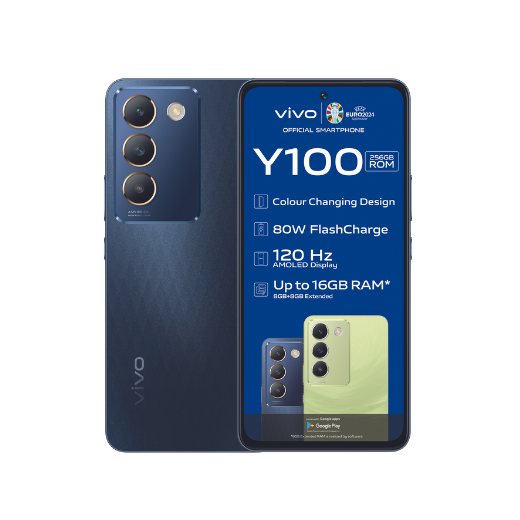 Moreover, the VIVO Y100 is furnished with a 5000mAh battery that supports 80W fast charging, providing prolonged usage and quick recharging. It also includes features like an in-display fingerprint sensor, dual speakers, and 4G connectivity.