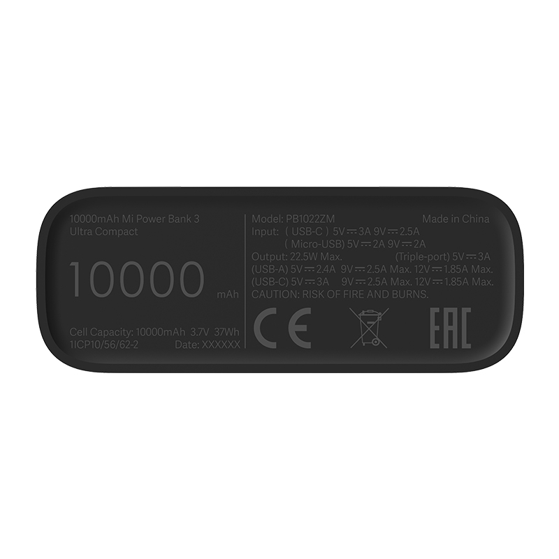- Battery capacity: 37Wh 3.7V (10000mAh)